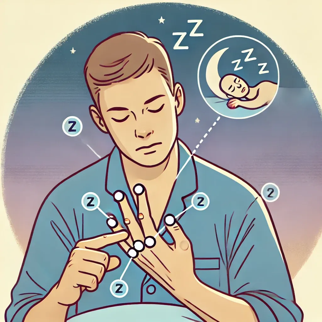 잠자기 전 간단한 손가락 지압으로 불면증을 완화할 수 있습니다. 손바닥의 한가운데에 있는 '심포구'라는 지점을 지압하면 긴장을 풀고 심신을 안정시키는 효과가 있습니다. 또한, 손가락 세 번째 관절 부위에 있는 중충을 지압해 주면 불면 해소에 도움을 줄 수 있습니다.
